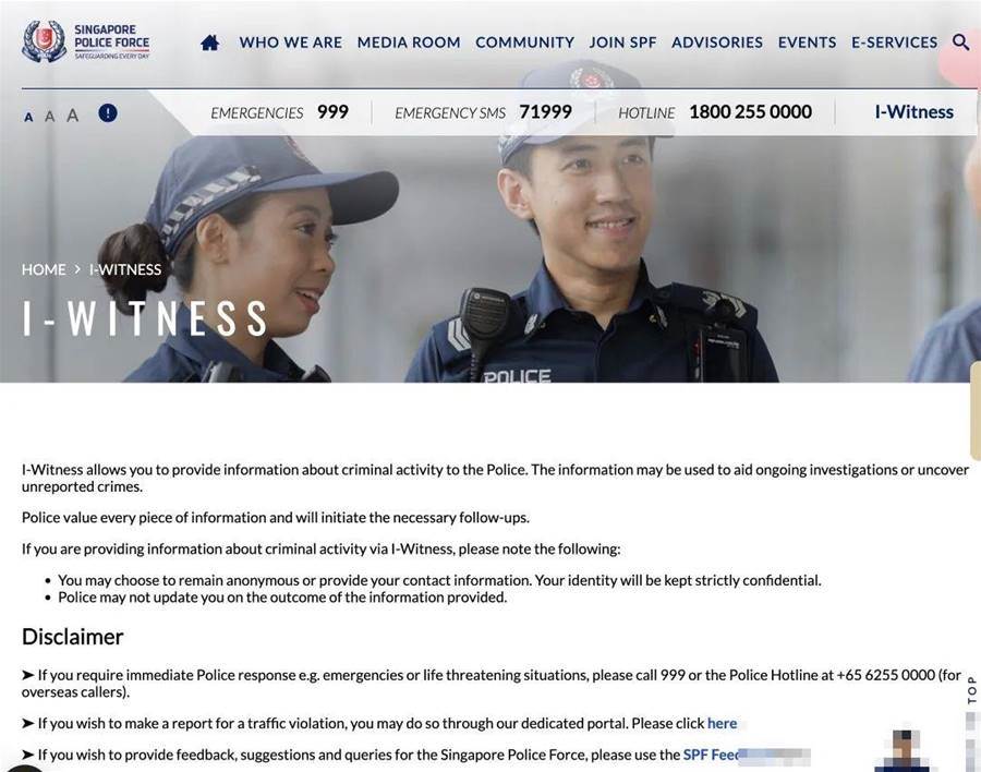 填写线索网址:www.police.gov.sg/iwitness
