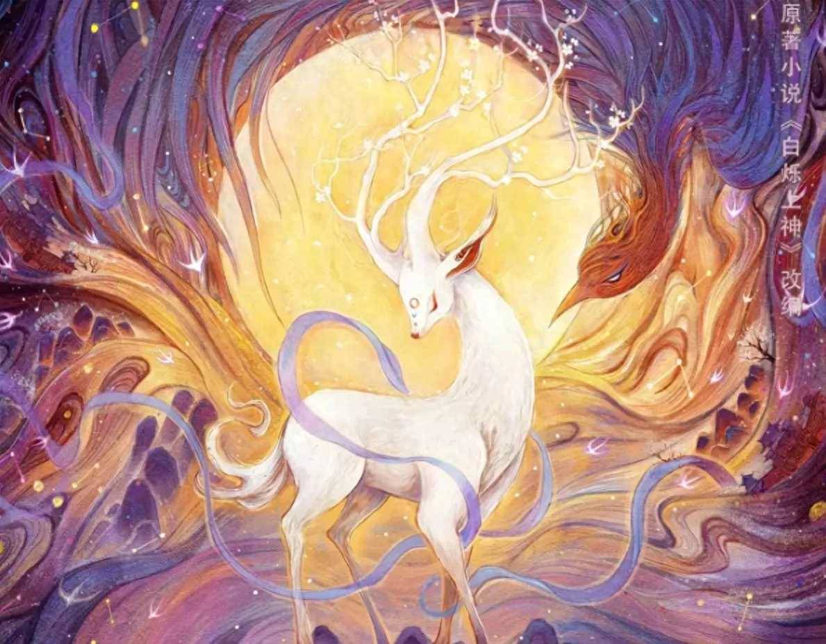 全身白皙,四肢纖細,周圍還有飄起的紗帶,是尚未變成人形的仙鹿狀態。