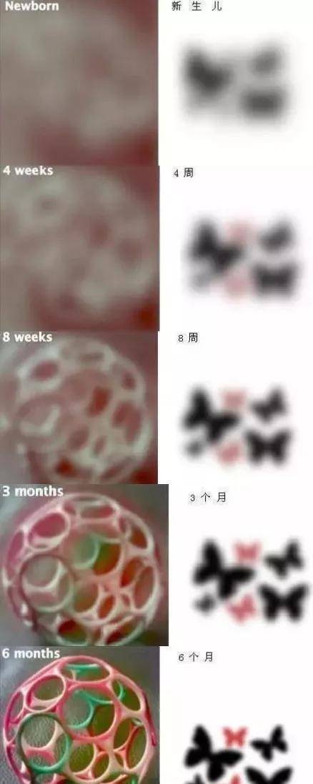 隨著孩子視力的逐漸發育,4個月左右可以辨別顏色,6個月左右才可以基本看清眼前的事物。