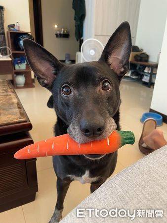 ▲▼玄米個性黏人,平時喜歡玩紅蘿蔔玩具。(圖/IG賬號「@wehavetwodogs_」提供)