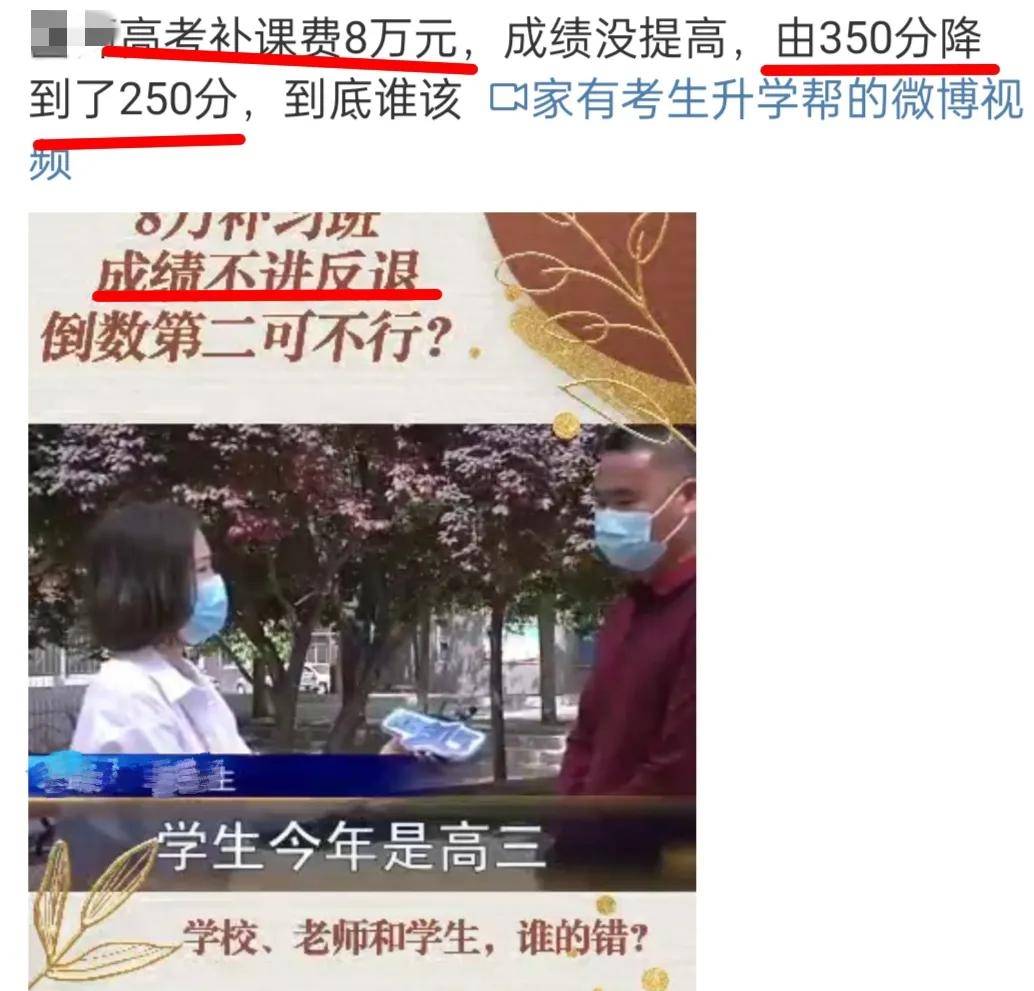 還有花8萬給高三的孩子補課,成績不但沒提高,總分反而降了100分,學校老師、學生誰的錯?