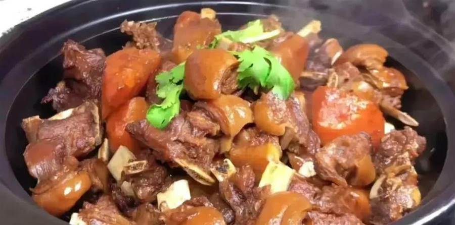 4、40分鐘后,把里面的大料撿出來。然后把胡蘿卜塊放進來,繼續燜煮20分鐘。最后把湯汁收汁濃稠,準備一個砂鍋,把羊肉放進來。香噴噴的紅燜羊肉就已經做好了,軟爛入味。
