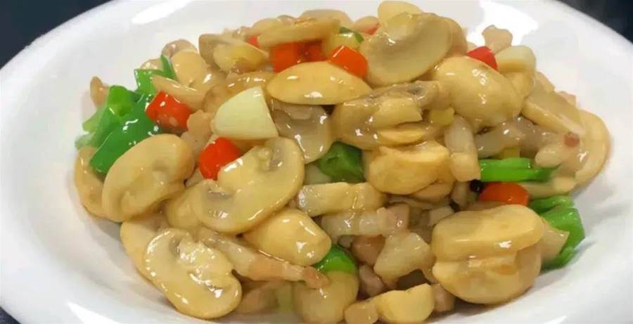 1、口蘑先用淡鹽水浸泡十分鐘,改刀切成片。