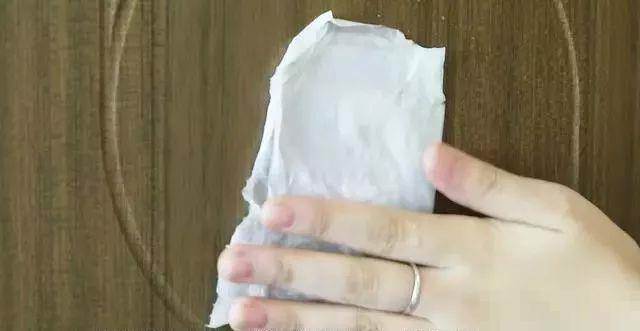現在就一起來看看它有什麼妙用吧。大家看一下在平常我們有時候會不小心把雙面膠貼到門上,特別是過年時我們用它來貼福字時,雙面膠在我們門上是揭不下來的,不管我們怎麼去弄它都是弄不下來,那麼我們該怎麼辦呢?其實只需要我們自制溶液就可以了,我們拿出一個紙巾,然后在這個自制溶液中蘸一下,把它蘸濕了即可把它貼到雙面膠上就可以了。