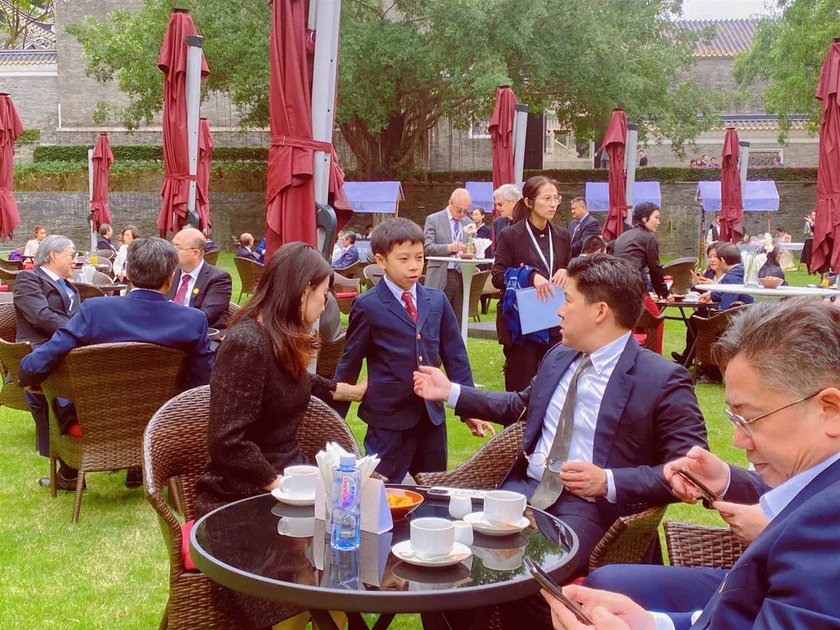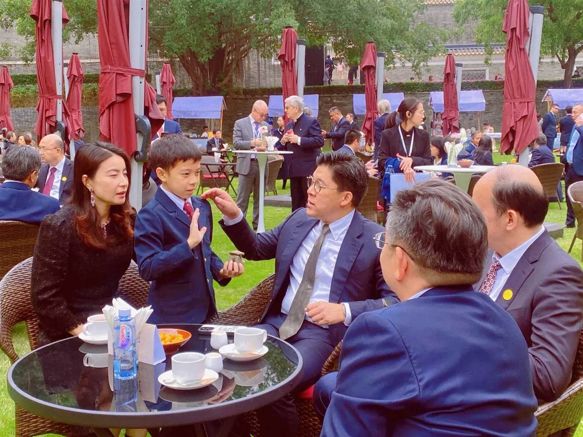 郭晶晶霍啟剛夫婦還讓大兒子霍中曦跟長輩打招呼,霍中曦站得端端正正,面帶微笑,輕輕揮手,一點也沒有怯場。