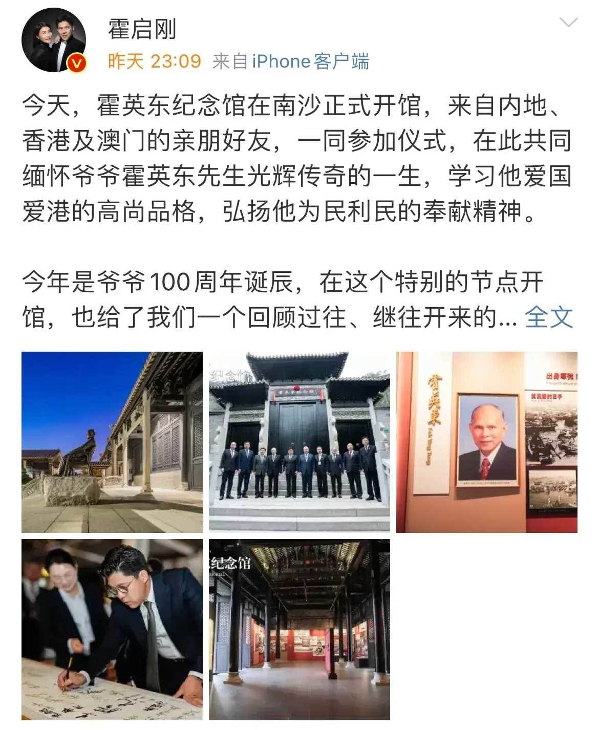 當天,霍啟剛也在社交平台曬出照片,并發長文分享了自己的心情,也歡迎大家到場參觀,學習霍英東先生的愛國情懷,弘揚他的奉獻精神。