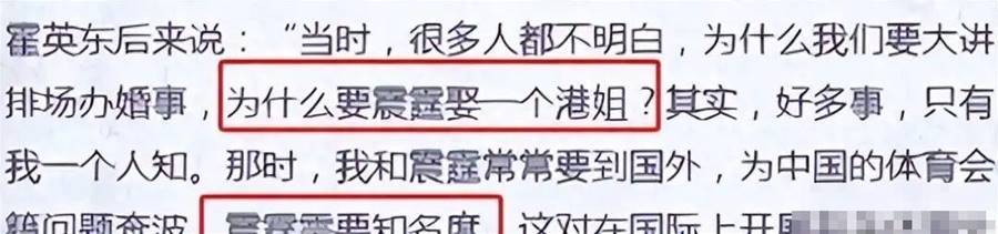 傳到霍震霆的耳里,兩人關系再添嫌隙。2002年,霍英東接受采訪,稱霍震霆娶朱玲玲的其中一個原因是霍家需要知名度。利用一個「歷史第一位」的港姐來幫助霍家打出知名度,是一個很賺錢的買賣。