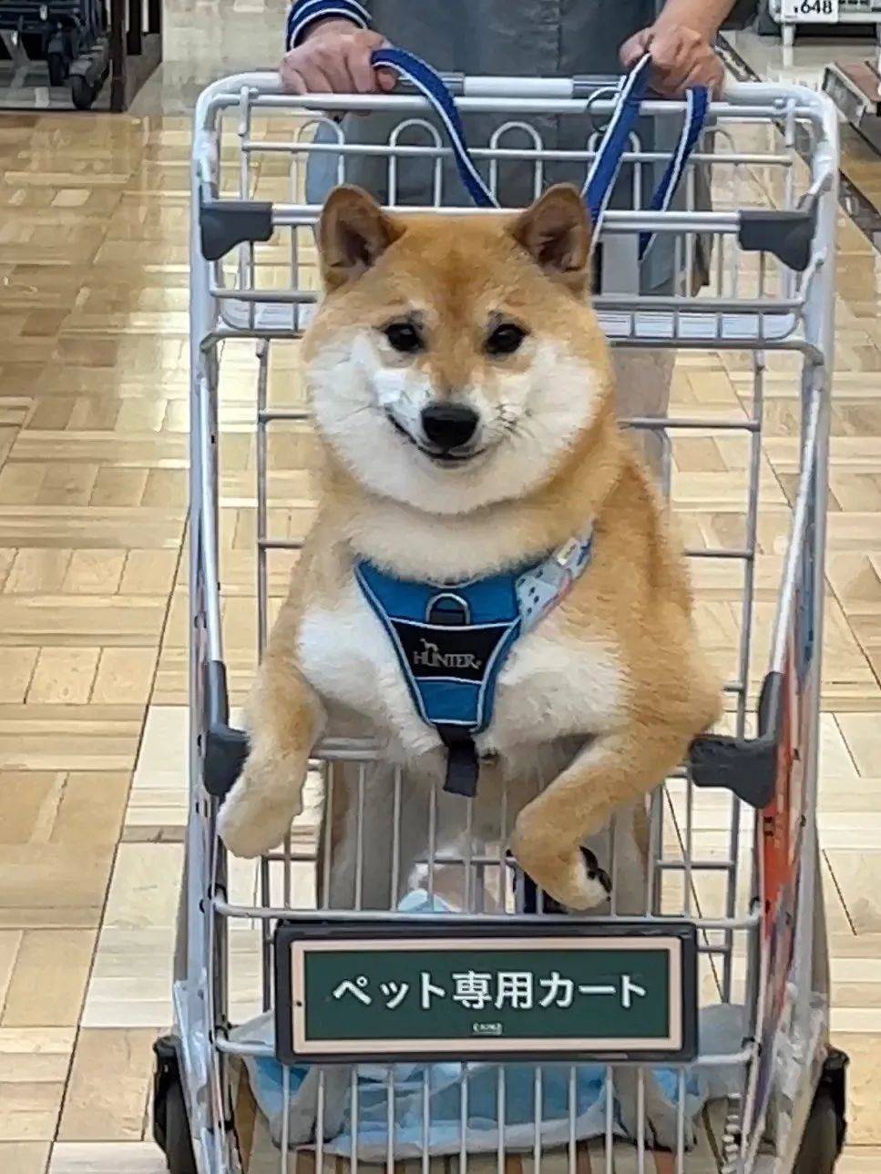 主人在Twitter上分享風太去美容院修剪毛發后的照片,帥氣的風太坐在寵物專用推車里,兩只前腳直接「放」在上面,露出它的招牌「邪魅一笑」,讓許多網友都被融化了。