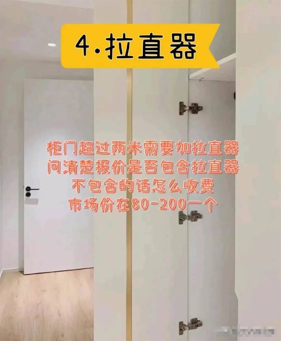 拉直器一般用于一門到頂設計,首先確認自己的門板和板材是否需要使用拉直器,或者套餐內是否包含拉直器,如果不包含,單獨計費的標準是多少?