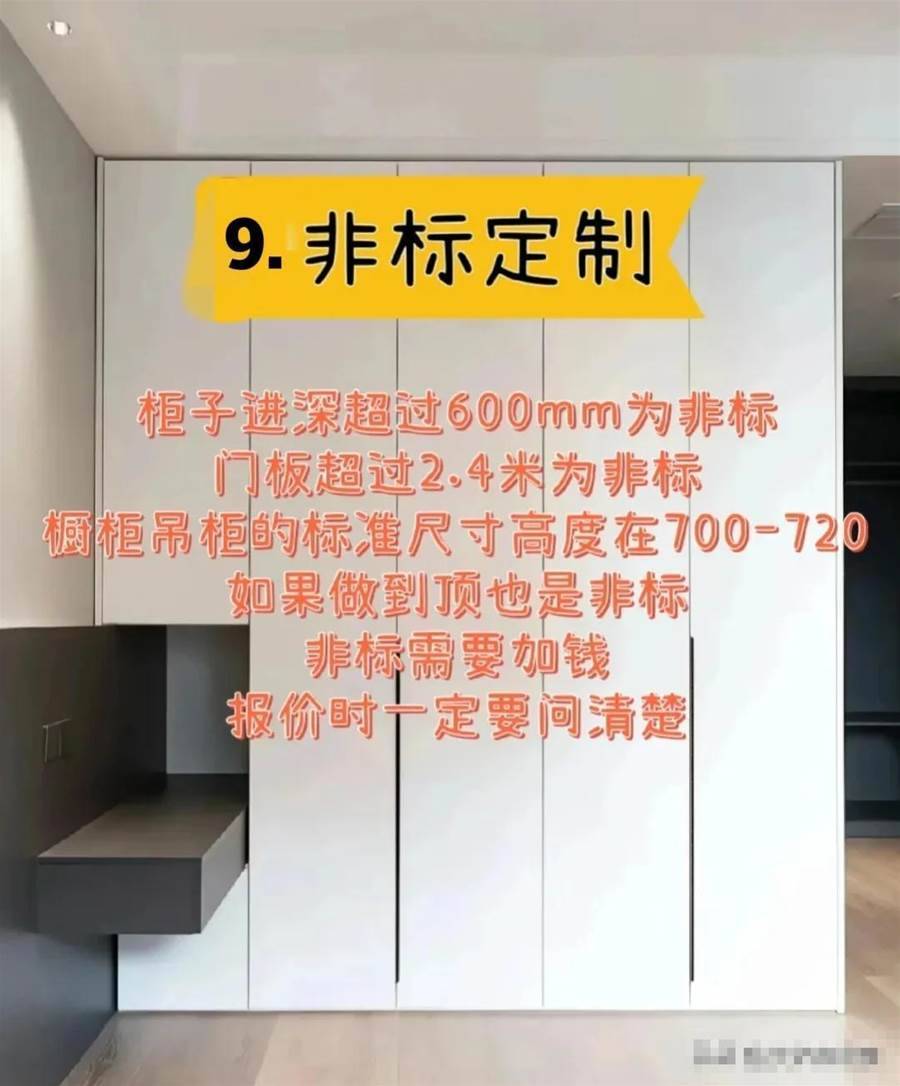 柜子一般情況下進深超過60cm,高度超過2.4m就為非標了,櫥柜的標準高度一般在720mm以為,如果想做異形定制、超高柜體柜門、免拉手、或者進深較深的柜子,是否需要單獨計費,計費的標準等,一定要確認報價