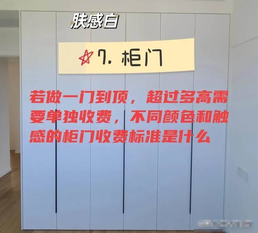由于不是所有的房子都可以做一門到頂,這時候為了美觀,天花板和地面不平會用到上下封板,提前問清楚這部分是否收費,收費標準是什麼?
