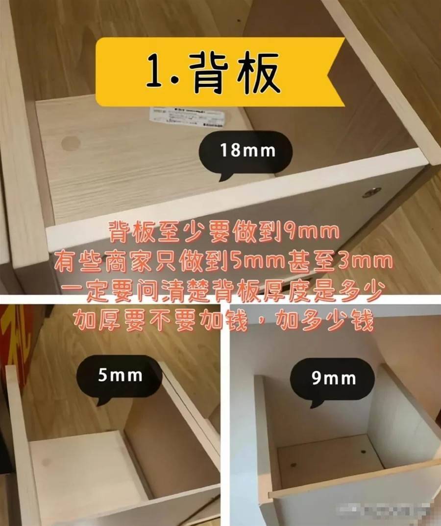 背板一般標配9mm背板,但是有的商家會用5mm甚至3mm的背板。所以一定要問清楚加厚背板要加錢嗎?收費標準怎樣?這些合同要寫清楚。