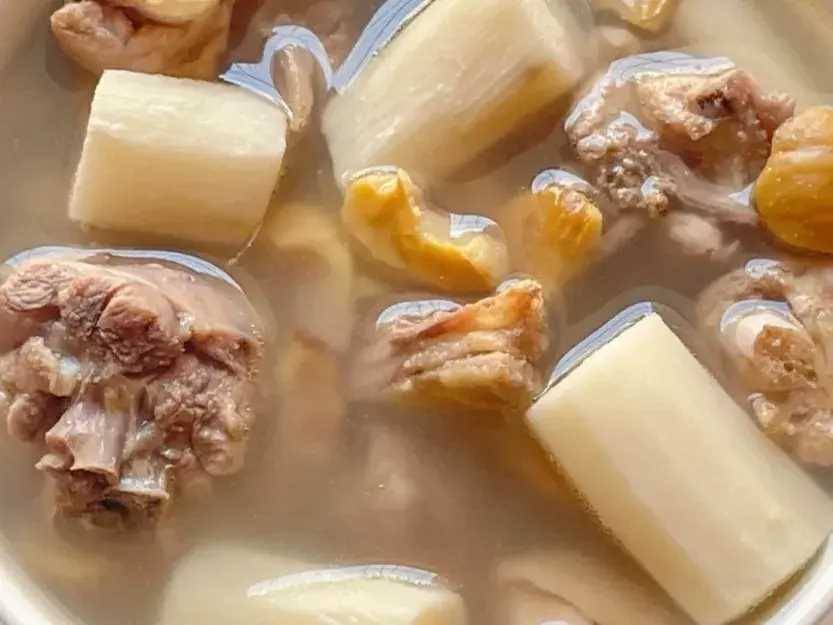 4、接著放入山藥繼續燉煮半個小時。煲好之后,加入食鹽調味,攪拌均勻煮至入味即可出鍋開吃。