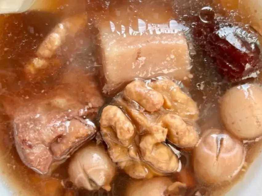 準備食材:豬尾巴,黑豆,牛大力,巴戟,杜仲,茯苓,姜片,枸杞子。