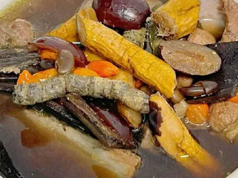 準備食材:豬骨,巴戟,杜仲,黑豆,紅棗,枸杞子,牛大力。