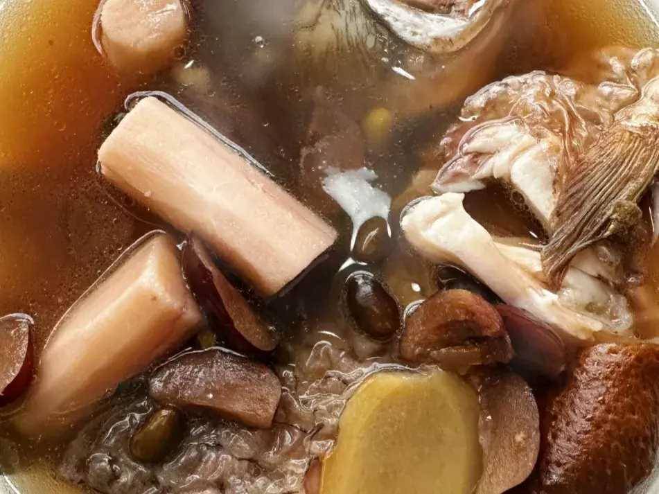 3、鯽魚湯煮至奶白色,轉移到砂鍋中,放入黑豆、紅棗和山藥,蓋上蓋子煲半個小時。煲好之后,加入食鹽調味,攪拌均勻煮至入味即可出鍋開吃。