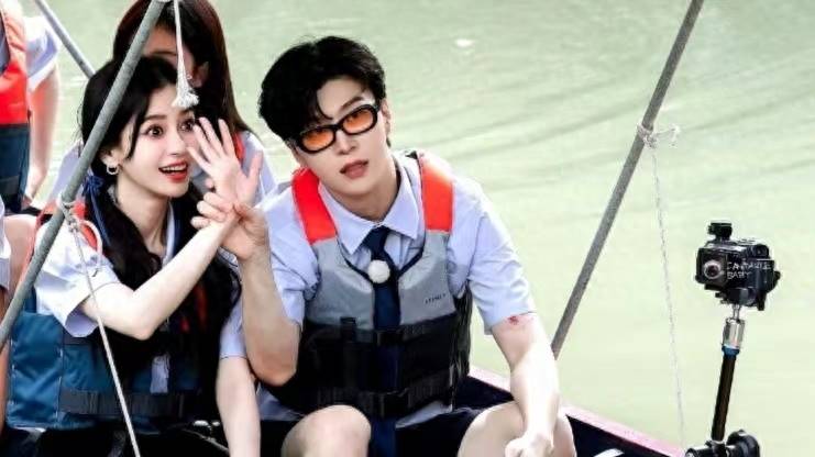 在游船環節,大家乘船游玩錄制節目。白鹿一直在揮手打招呼,旁邊王鶴棣帶著一副墨鏡好酷。