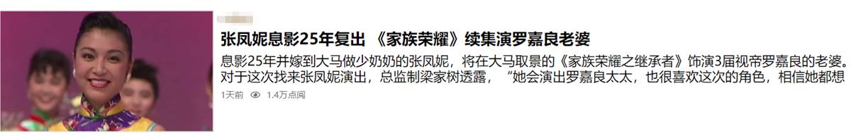 令人惊喜的是,演员名单中出现了一个久违的名字,那就是张凤妮,她将在新剧饰演罗嘉良的老婆。