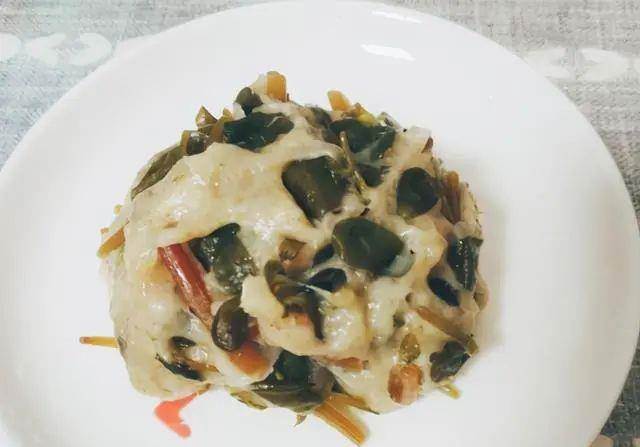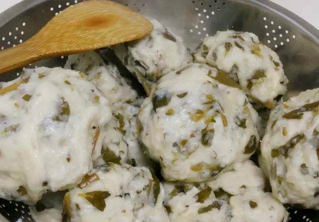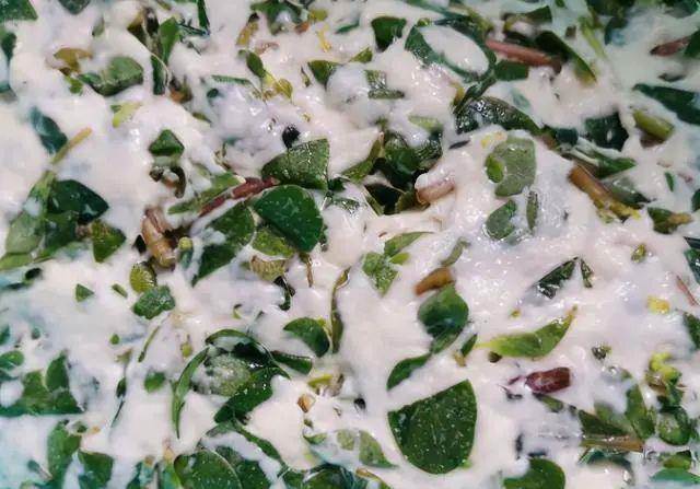 2、馬齒莧中之所以要分次加面粉,是為了可以更好掌握,如果面粉一次性放太多,面團會變得比較干硬,馬齒莧中加入面粉只要可以成團的狀態便可,不需要放太多,否則吃不到馬齒莧的口感;
