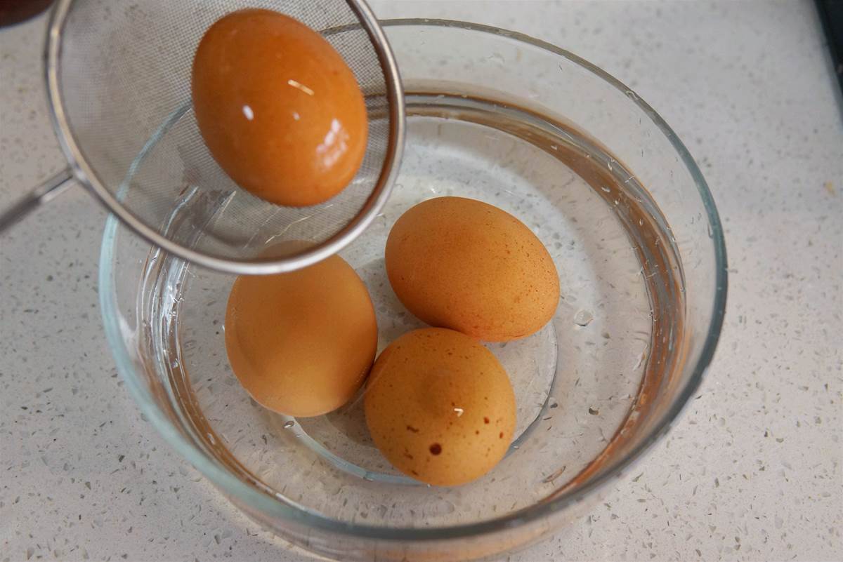 2、煮好的雞蛋撈出來,放在涼水中「激」一下,煮好的雞蛋溫度很高,用涼水「激」一下,