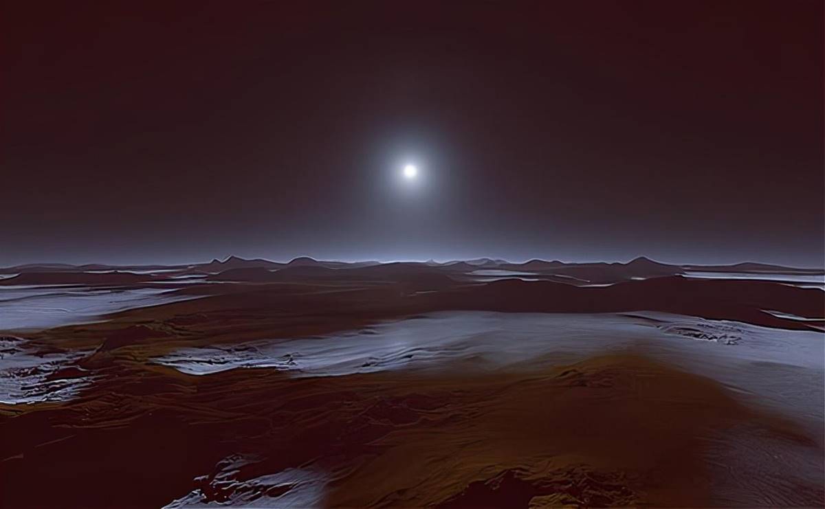 如果你能夠身處于冥王星的表面,將會看到連綿起伏的冰山,在如此的低溫下你一刻也無法生存,因為在冥王星的表面,一切都處于冰凍狀態,甚至甲烷、氮、以及一氧化碳都形成了固態。可以說在冥王星表面沒有任何地球生物能夠生存