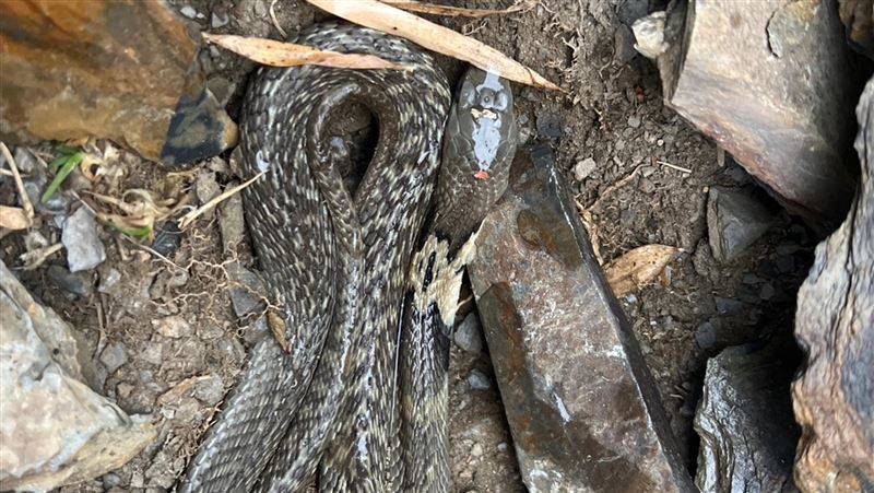 (圖/中央社)農業部林業及自然保育署南投分署人員今天接受媒體聯訪說,昨天有遊客在合歡山武嶺發現眼鏡蛇,立即通知合歡山森林遊樂區值班人員處理,工作人員在武嶺停車場公廁附近發現眼鏡蛇,