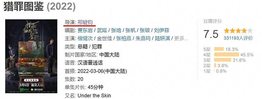 值得一提的是,于去年3月上線首播,由邢鍵鈞執導,檀健次、張柏嘉領銜主演,金世佳特別主演,秦海璐、房子斌等特別出演的單元刑偵探案劇——《獵罪圖鑒》,也同樣是近年來,口碑頗受認可的一部國產刑偵題材懸疑佳作。