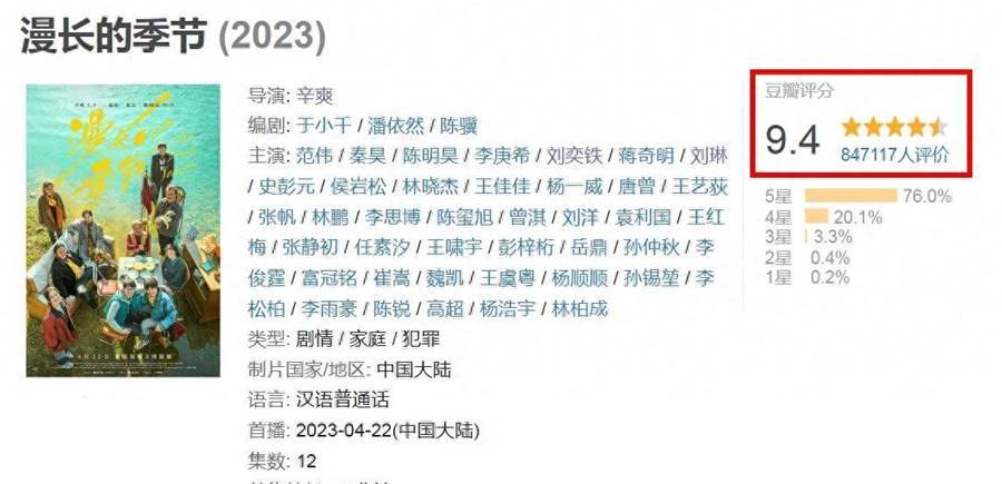 尤其是由《隱秘的角落》導演辛爽,再次鼎力執導,范偉、秦昊、陳明昊領銜主演,李庚希、劉奕鐵、蔣奇明、王佳佳等聯袂主演的《漫長的季節》,更是豆瓣平台,取得高達9.4的超高評分。一躍成為近些年來,國產刑偵懸疑劇的「天花板」級別存在。