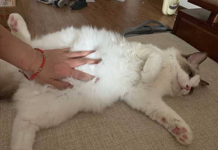4、肚子。很多猫咪都会主动对主人翻肚皮,在地上打滚求抚摸,当主人轻轻地摸它的肚子时,猫咪就会满足地闭上眼睛,甚至发出舒服的呼噜声,由此可见,它多渴望被主人摸肚皮了。