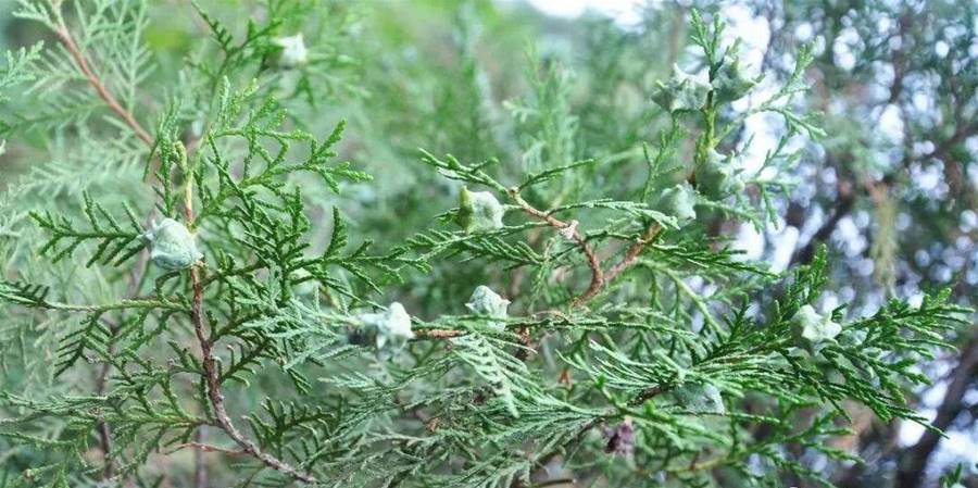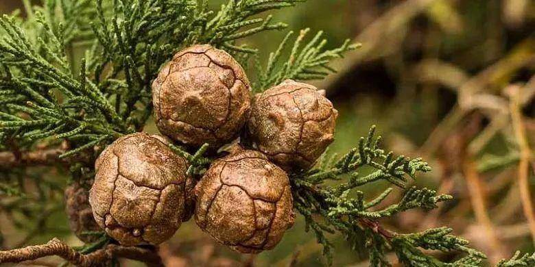 我們今天要摘的是柏樹的果實,也就是它頂端這個,也成為它的種子,柏樹果實較葉片顏色交較淺,果實有很多棱角,呈橢圓扁平狀,每個枝節可接觸3-6顆果實,花期為3-5月份,果實第二年5-7月份成熟。 柏樹果實和柏樹的價值不同,果實具藥用,除了安神的作用,像針對輕微的感冒頭痛,小孩風寒發燒也有一定的效果。可取柏樹果放于枕頭底下,讓果實的氣味伴隨晚上的睡眠時間,長此以往,安神助眠效果甚好,另外,可取果實曬干研磨,泡水煎服,這種植物果實無毒,性平,不刺激,正適合老人。