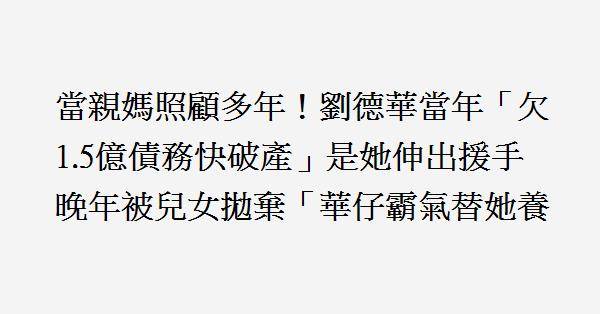 5億)的債務,就當華仔落魄為錢發愁的時候,沒有一個朋友願意幫他,畢竟這不是一筆小數目,而這時候葉德嫻對華仔伸出援助之手,不僅幫他還清了4000萬,還利用自己人脈和資源幫他,最後讓華仔東山再起成為一代「影帝」。