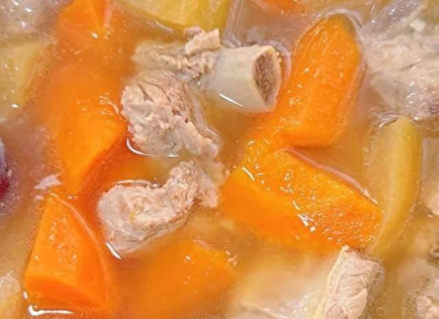 3、將排骨、胡蘿卜和姜片放入湯鍋中,加入適量的清水,蓋上蓋子燉煮半個小時。接著放入蘋果和紅棗繼續煮二十分鐘。