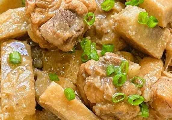 3、接著放入醬油、蠔油、白糖調味,翻炒均勻炒至入味和上色,再放入炸過的芋頭,加入適量的清水沒過食材,蓋上蓋子燜煮十五分鐘。
