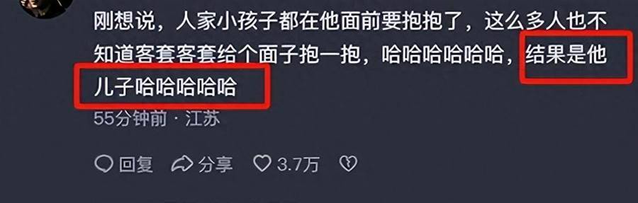 更有趣的是,大家很快便扒出,這個一直求抱抱的可愛的男孩,疑似就是他自己的兒子。