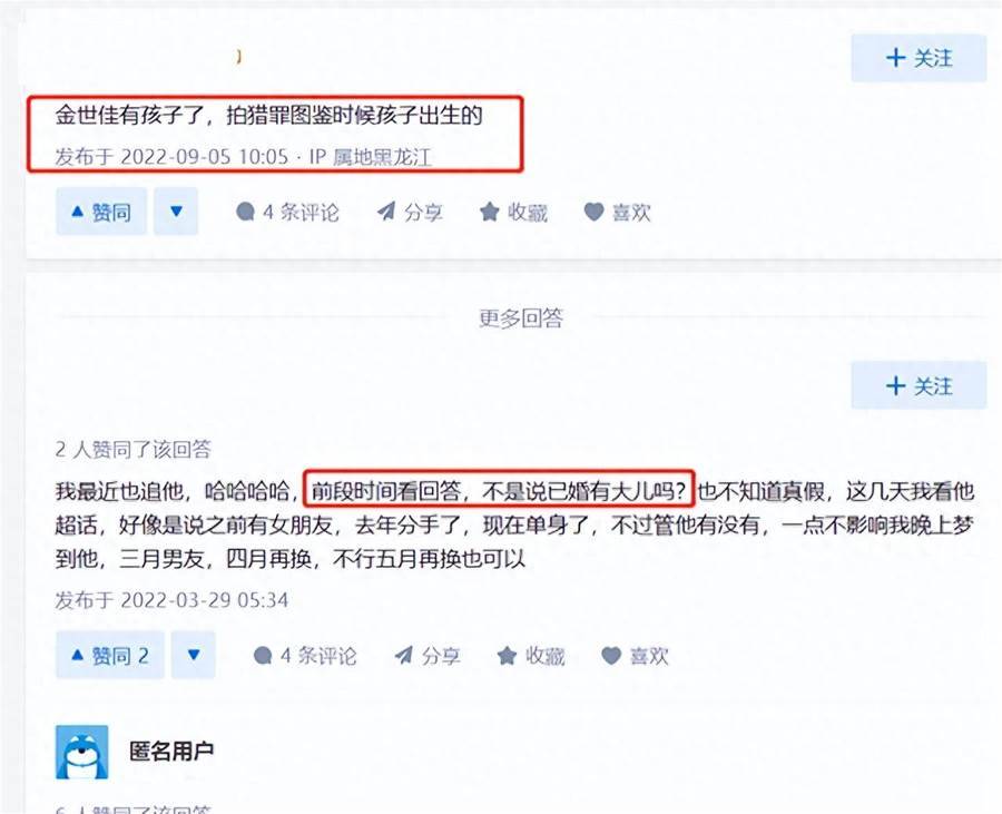 而關于其隱婚生子的消息,則是在兩年之后的4月被網友曝光的,有知情人稱朋友說金世佳已經低調結婚,同年9月,也就是拍攝《獵罪圖鑒》時,孩子出生。