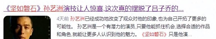 直到如今,孫藝洲獲得張藝謀的肯定,參演了大片《堅如磐石》,但是否能甩掉「呂子喬」的標簽,還得拭目以待。
