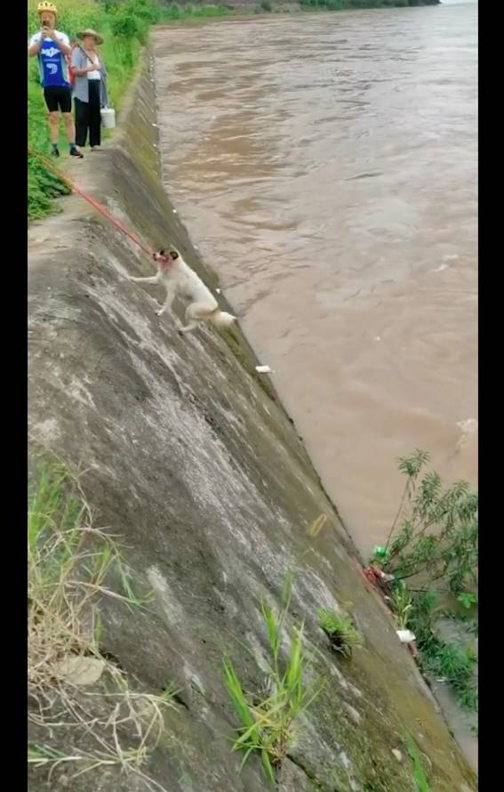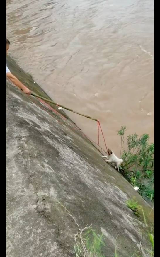 8月10日在四川成都,有一位網友那一天在經過江邊的時候,發現有一只狗狗掉到了下面,估計是因為不小心而掉下去的!而人們也不敢輕易下去救它,萬一也掉進江里,那可是有生命危險啊!這時候有一位大叔,拿了一根棍子系著繩子,打算讓狗狗咬住繩子,再給它拽上來!