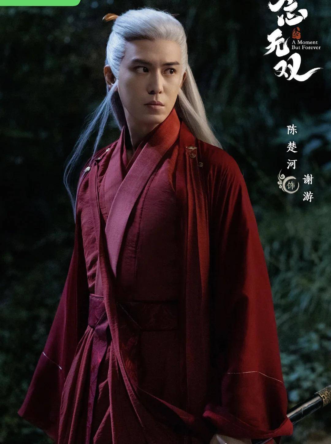 陳楚河扮演的謝游紅衣白發很顯眼,一身紅衣夢回《說英雄誰是英雄》蘇夢枕了。