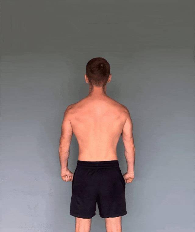 雙手屈肘,掌心向上保持掌心與手肘在一個水平線拉住彈力帶兩頭呼氣,收緊核心向兩側拉伸彈力帶感受背闊肌啟動,肩胛骨內收重復練習12-15次為一組