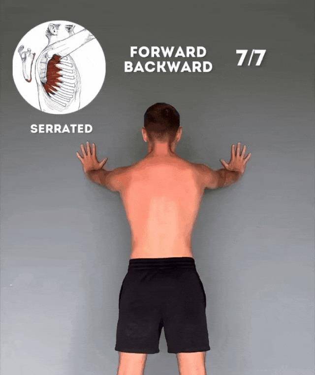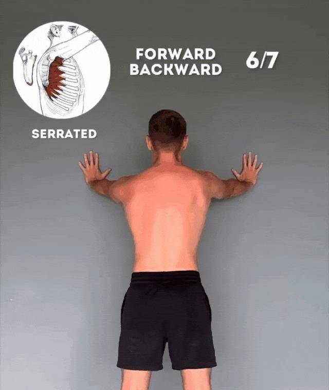 同樣做收縮練習,12-15次為一組保持上一動作的姿勢向左右兩側橫向移動肩胛骨重復練習12-15次為一組作8: