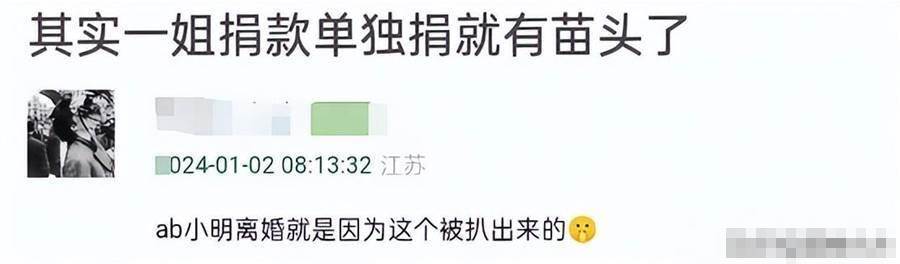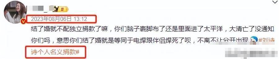 看到吳奇隆的行為,有網友立馬想到劉詩詩的單人捐款,還稱黃曉明和楊穎失婚就是通過捐款行為扒出。在去年年中,劉詩詩以個人名義向京津冀災區捐贈善款,當時該話題上熱搜引起不小的爭議,不少網友圍繞「結婚能不能獨立捐款」爭論,吵得最兇的便是劉詩詩吳奇隆疑似失婚。