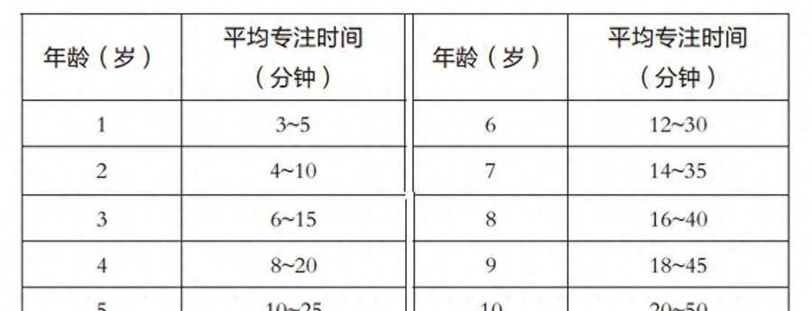 孩子能集中注意力的時間,會以每年延長2-5分鐘的速度不斷增加。不同階段的孩子,他專注的時間不同。