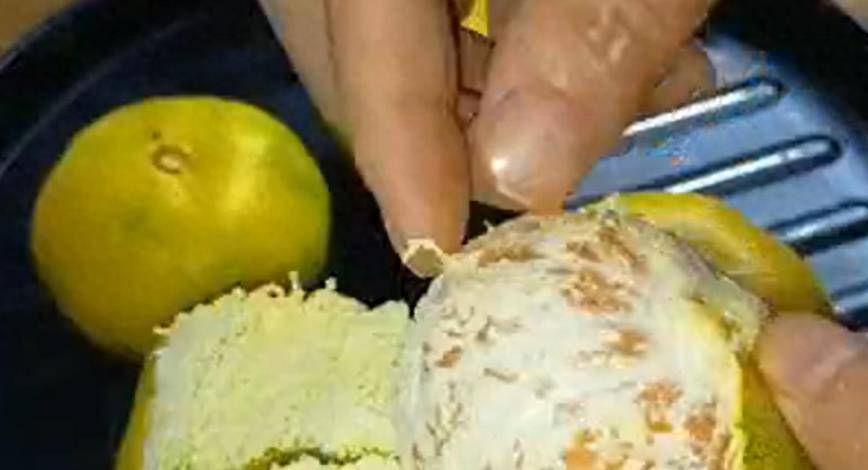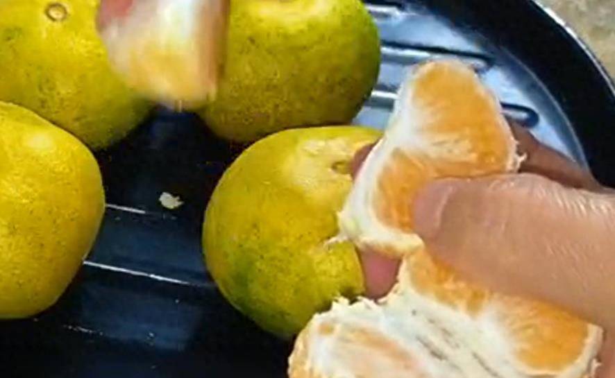 如果我們可以輕松感受的到它里面的果肉的話,說明這個橘子皮是非常薄的,這一種就是母橘子,皮薄又甜,特別的好吃。