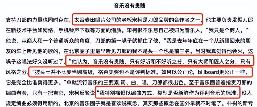 宋柯甚至公開表示:音樂沒有貴賤之分,只有好聽和不好聽。