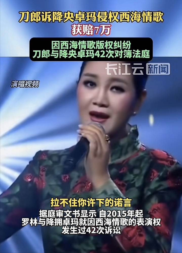 其實,這也并不是刀郎與降央卓瑪之間第一次因為《西海情歌》而對簿公堂。從2015年起,兩位歌手就因為這首歌發生過42次訴訟。