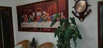 躺椅子上面擺放著一幅超大型的油畫,畫的是最后的晚餐。按照老公的說法,這幅畫有著深刻的寓意,每次看到他都會激勵著自己。